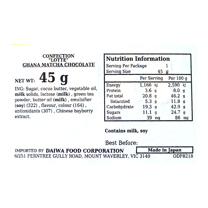 Ghana Matcha Chocolate 1.58 Oz (45g)