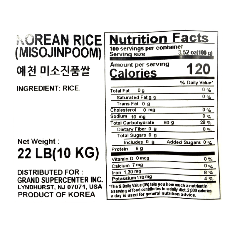 Product NameYecheon Korean Rice 22.04 Lb (10kg)